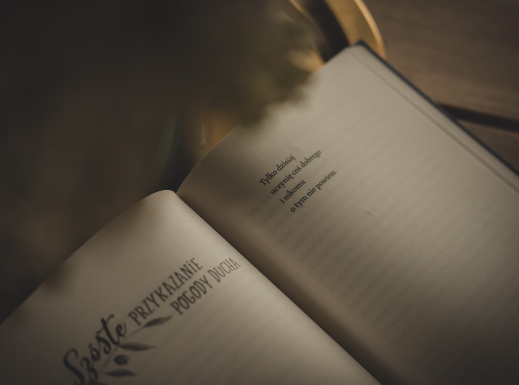 „Tylko dziś się liczy” to krótka książka, którą można spokojnie przeczytać w jeden dzień. Nie róbcie tego! Dajcie sobie czas. Osobiście proponuję rozbić sobie lekturę tej pozycji przynajmniej na 10 dni. Każdego dnia – „tylko dziś” – postaraj się porozmyślać nad kolejnym przykazaniem pogody ducha i … zastosować się do niego. Zrób to choćby tylko dziś.