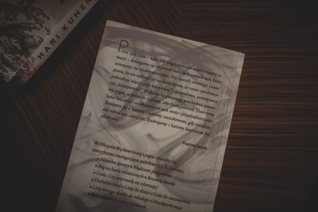 Choć osobiście darzę go niesłabnącą sympatią i byłem silnie zmotywowany by nie utracić wątku oraz pamiętam jeszcze wiele trudnych słów z czasu studiowania teologii – muszę przyznać się, że w pewnych akapitach byłem zagubiony jak dziecko we mgle. Przypomniało mi to również inną wydaną przez Logos książkę, z którą mierzyłem się kilka lat temu – „Błądzenie pielgrzyma”, autobiografię C.S. Lewisa, napisaną w roku jego nawrócenia na chrześcijaństwo. Te dwie, ciężko przyswajalne pozycje, sprawiają, że tym bardziej doceniam autora za to, iż w większości książek potrafi dostosować poziom argumentacji do mniej bystrych czytelników, do których najwidoczniej się zaliczam. W końcu większość zna go przez pryzmat „Opowieści z Narni”, które napisane dla dzieci, mówią o sprawach niezwykle wielkiej wagi.