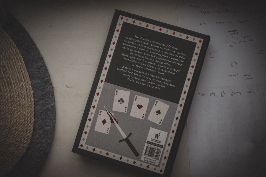 Zgadzam się z tym, że napięcie jest w tej książce duże. Nie zgadzam się jedynie z tym, że Agatha Christie wyeliminowała element zaskoczenia. Może książka nie jest naszpikowana cliff hangerami jak najnowsze powieści Remigiusza Mroza, ale kilkakrotnie udało się autorce mnie zaskoczyć. Przede wszystkim jednak udało jej się kolejny raz wyprowadzić mnie w pole, choć miałem przecież 25% szans na odgadnięcie mordercy. Od początku wiemy, że to jeden z czterech graczy w brydża, podczas bardzo specyficznego przyjęcia.