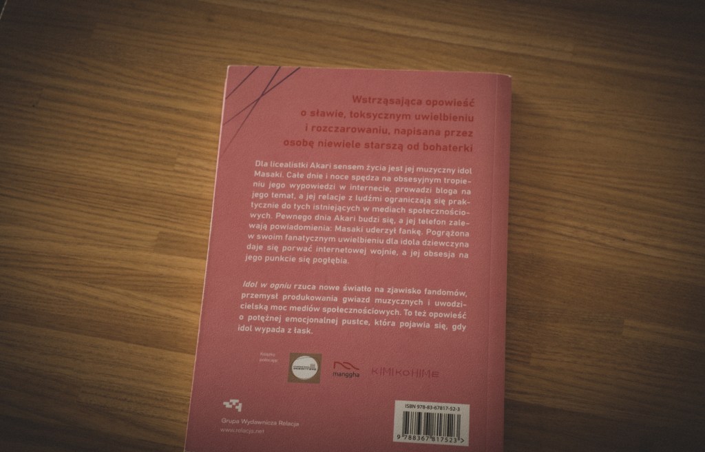 „Idol w ogniu” Rin Usami to poruszająca, głęboko refleksyjna powieść, która wnika w mroczne zakamarki młodzieńczych obsesji i lęków. To nie tylko opowieść o kulturze idolów, ale także subtelne studium psychologiczne młodej osoby, która stara się znaleźć swoje miejsce w świecie, który wydaje się jej obcy i nieprzyjazny.