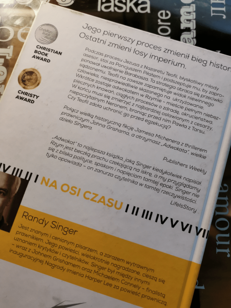 Nie chcę opisywać fabuły – by nie odbierać Wam frajdy z lektury. Napiszę jedynie, że bez dwóch zdań – WARTO. To jedna z najlepszych książek jakie przeczytałem. Nieraz sięgałem po popularne tytuły z listy bestsellerów i kończyłem je z rozczarowaniem, ponieważ miałem przeświadczenie, że nawet ja mógłbym napisać taką książkę. W tym wypadku jest inaczej. Chylę czoła przed Randy Singerem. Mało kto jest w stanie napisać taką książkę! Wykreować taką postać, tak bogaty świat – i jeszcze wpisać to w istniejący świat, którego wiele szczegółów znamy nie tylko z książek historycznych, ale również z Pisma Świętego.